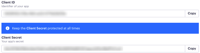 CMP generates the Client ID and Client Secret for your application. Share the value in this field with your Optimizely Solution Consultant. Keep these values safe.