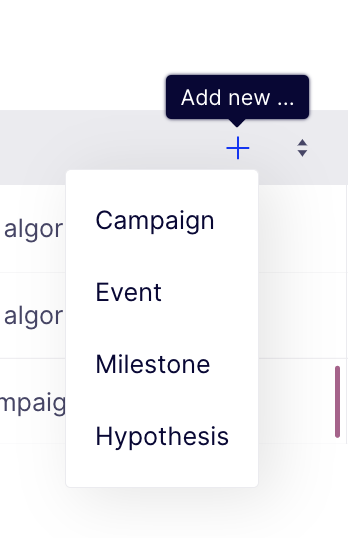 - On the Plan > List view, click Add new and select Campaign.