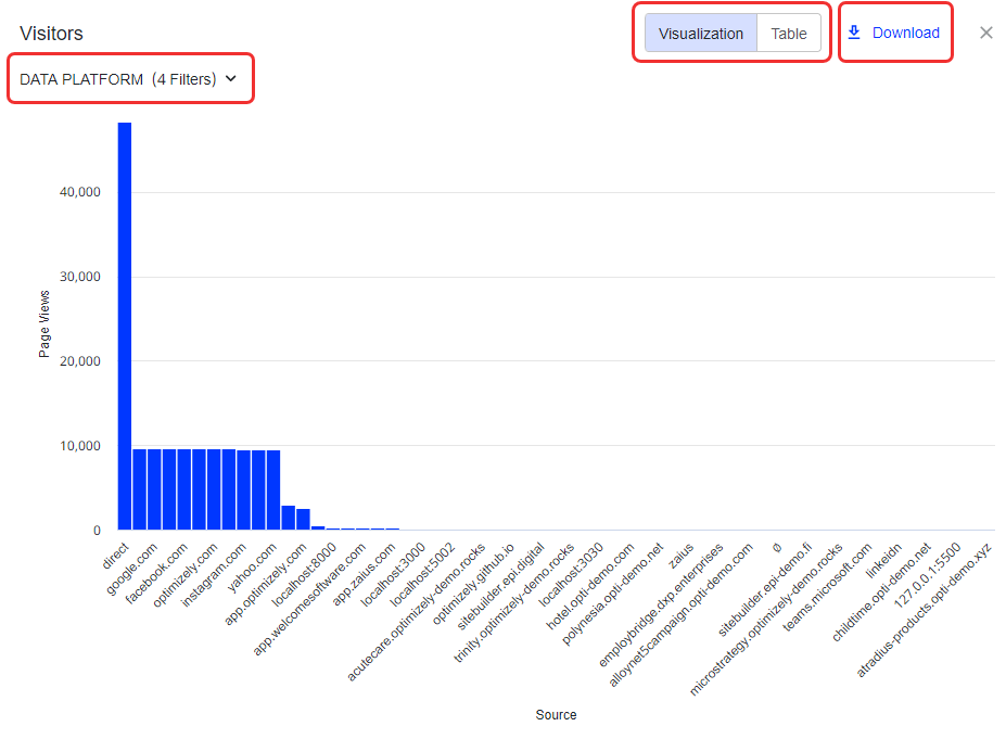 - Choose to view the data as a Visualization or Table.