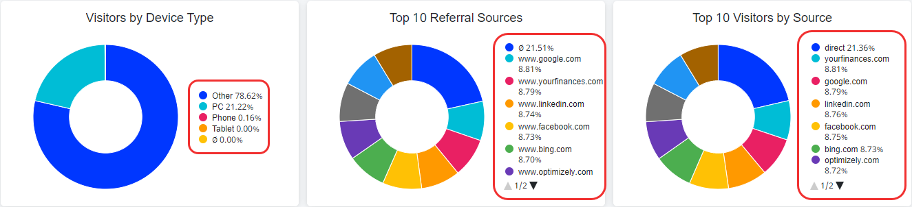 - Website Trends – Provides an overview of your website trends. For example, you can view graphs for the number of active users over time, the number of visitors over time, and the number of reachable users over time. All of which include the percent change in active users, visitors, or reachable users between each timeframe.