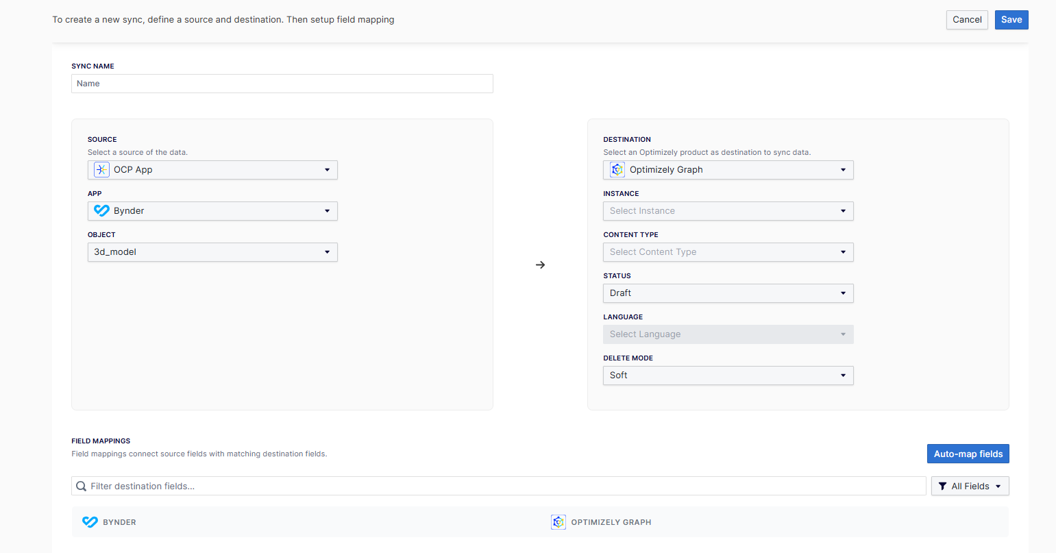 The Optimizely Connect Platform (OCP) Sync Manager lets you map data between Optimizely products and initiate a scheduled or real-time, automated data sync that runs until you pause or delete it.