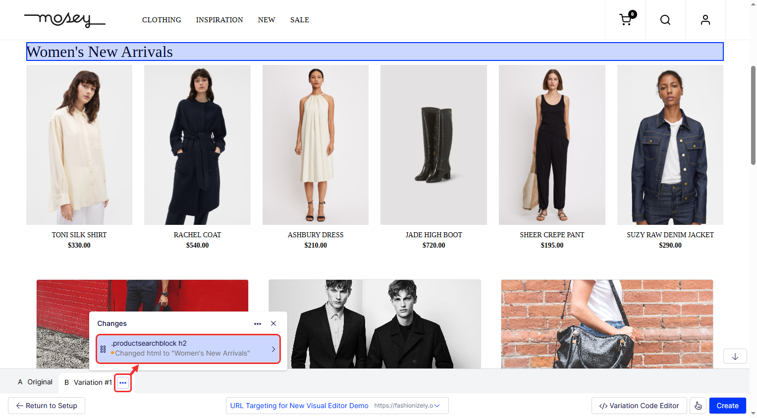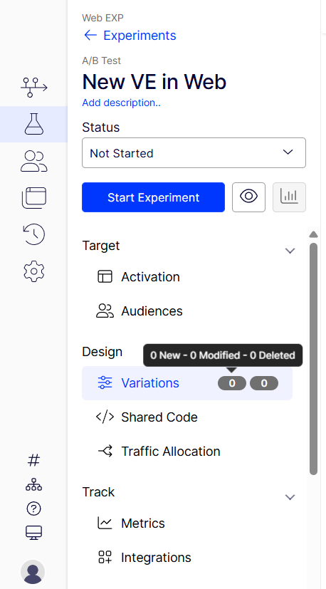 - Streamlined workflow – Changes are non-destructive and only visible for the experiment's duration. It includes a Variation Code Editor for custom JavaScript or CSS, and you can cycle through variations to view changes with clear status indicators