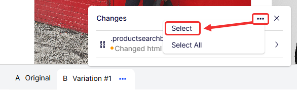 Click the variation tabs to switch between different variations. To see the specific changes for a variation, click More (...) next to the variation's name. If you need to make a change, click it to open the element change window and make the necessary adjustments.