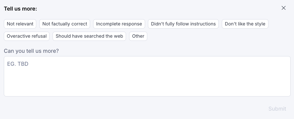Give feedback on a response – Click Thumbs up if Opal's response helped. Click Thumbs down if it did not help. If you click Thumbs down, you can add additional information before sending your response to Optimizely.