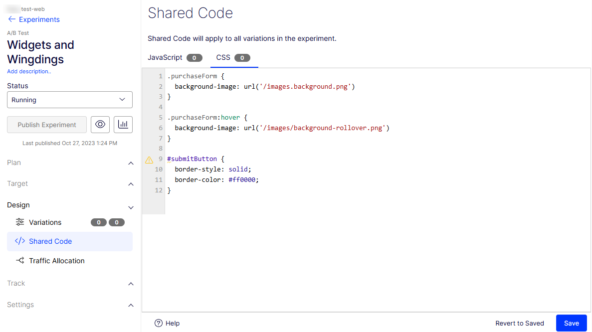 Add custom JavaScript or CSS to an experiment or campaign's shared code