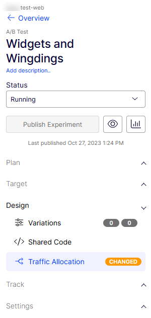 Click Publish Experiment for the new traffic allocation to take effect.
