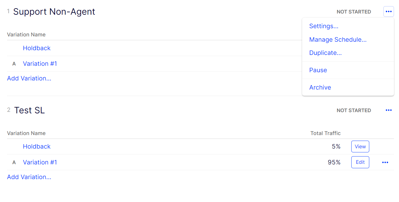 - Click ... for your existing campaign variation and select Manage Schedule.