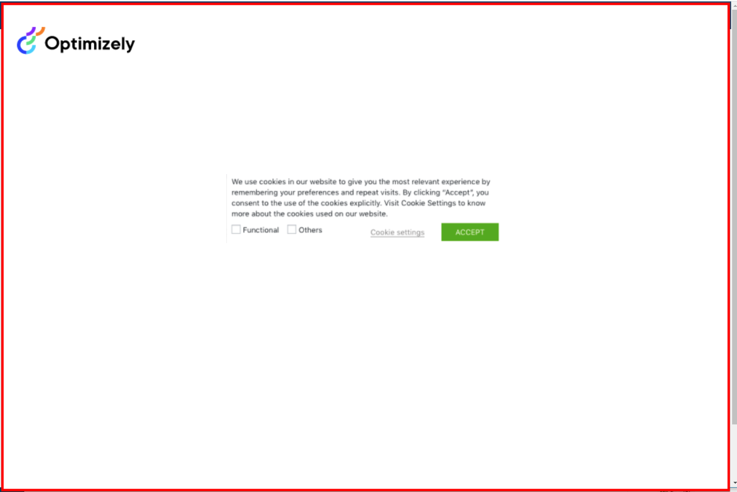 If the user has not given explicit consent, you can disable Optimizely and show a full page covering the original page. On this page, consent options are shown to the visitor for analytical tools that require consent, including Optimizely.