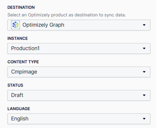 - Instance – Select the Optimizely Graph instance to which you want to sync your data.