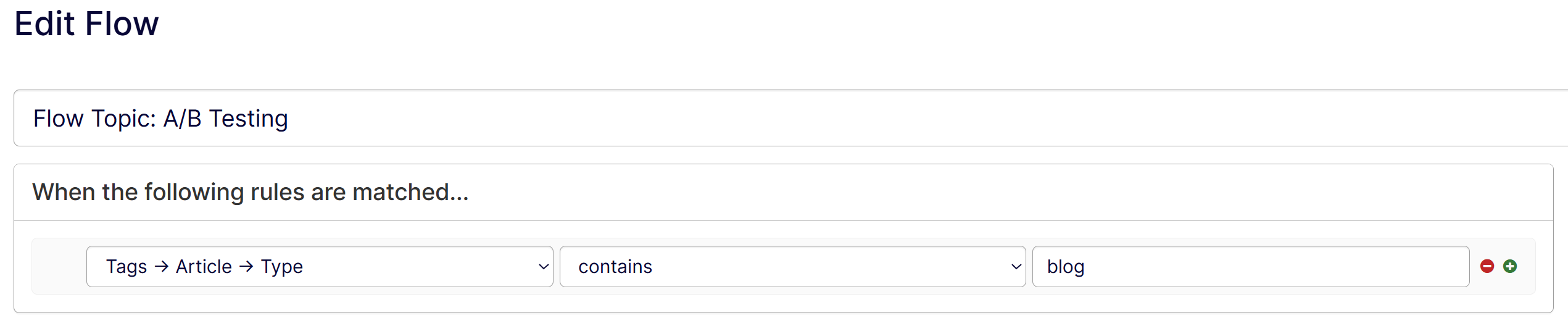 Now that you identified the number of content items processed during Q1 that contained A/B testing, you can use additional filters to identify the type of content processed in the same time period. You can create a Section containing your topic and assign a Flow to the section, ensuring your section only contains blog items with A/B testing. When you create a section with a specific Flow, it displays as the screenshot below: