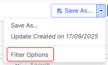 Expand the Save As drop-down list and click Filter Options to update the filter name.