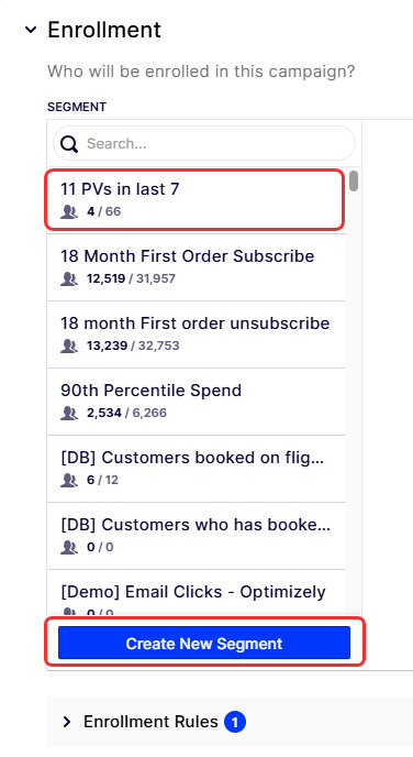 - (Optional) Adjust the Enrollment Rules for one-time and behavioral campaigns.