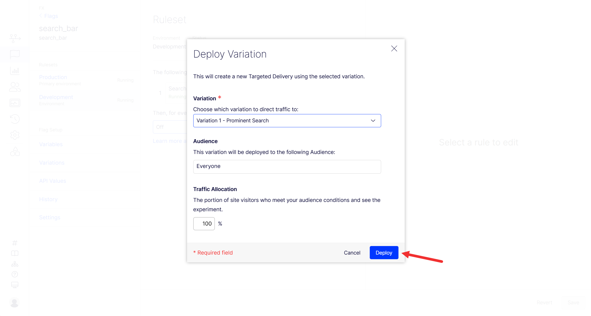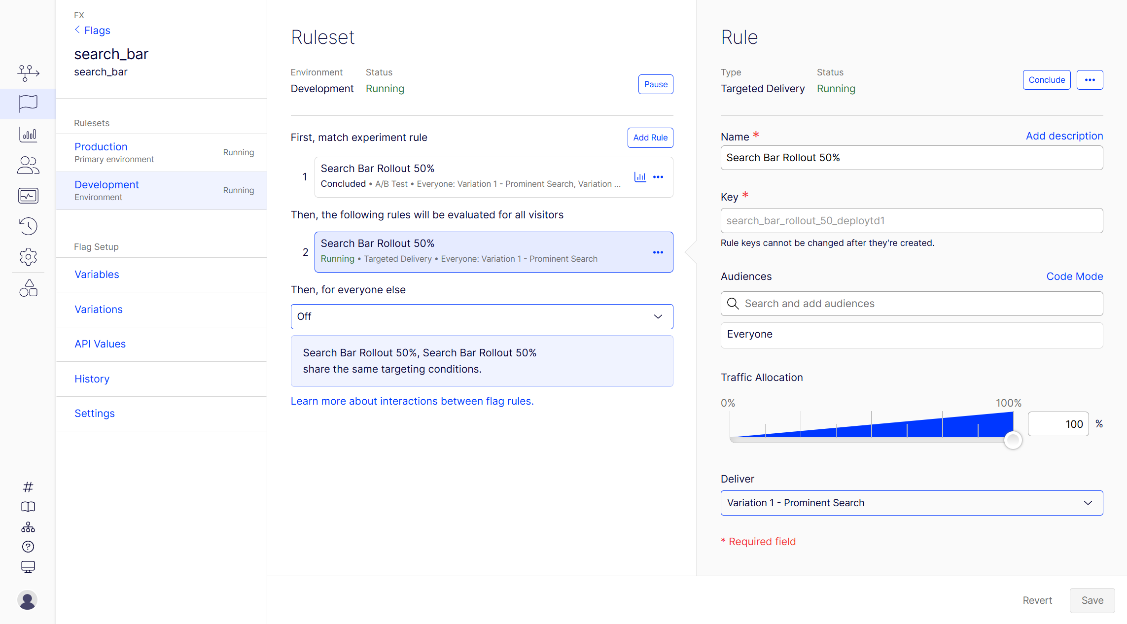 After concluding the experiment and deploying a rule, a Targeted Delivery rule is created for the selected variation.
