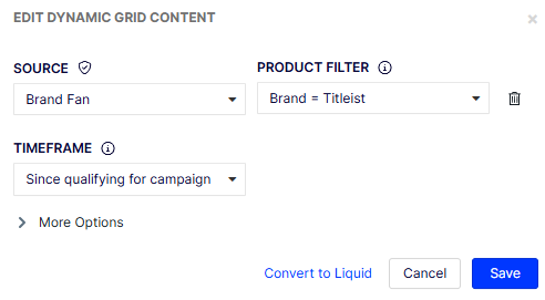 Product-based filters become available for use in the dynamic grid configuration options for your email touchpoints.
