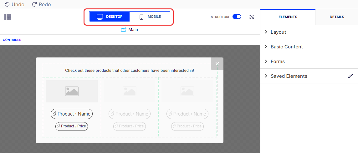 As users interact with your campaigns on both mobile and desktop, viewing how your content displays on each platform can help you arrange the layout. In Optimizely Data Platform (ODP), you can review and edit your content in mobile and desktop views.