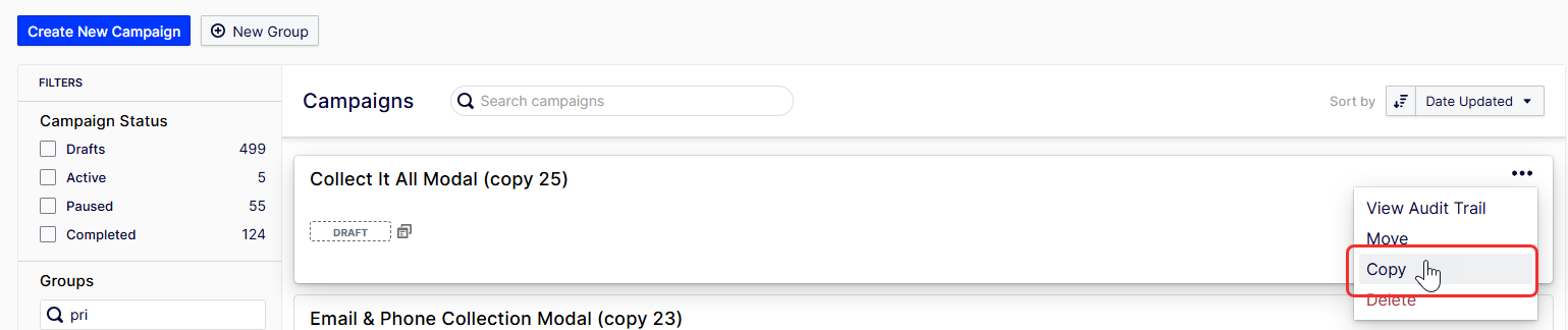 Move campaigns between groups