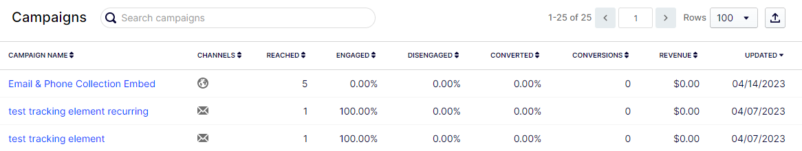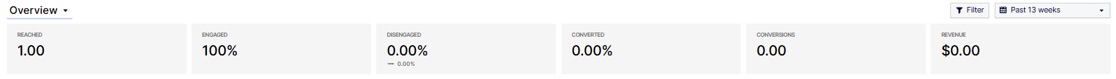 - Disengaged – The percentage of people who interacted with a campaign through disengagement-related events, like opt-outs from emails.