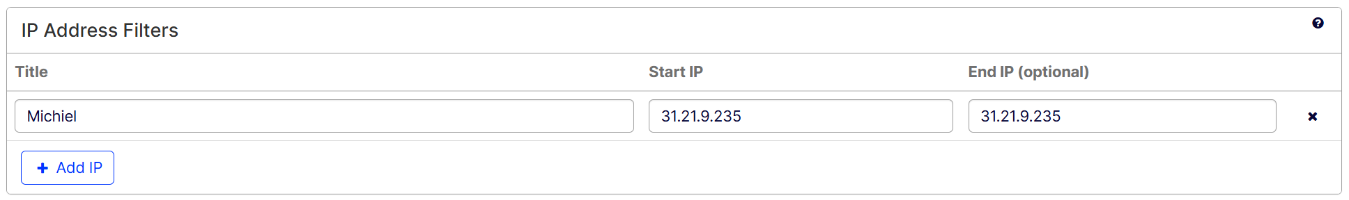 - End IP (Optional) – Enter the ending IP address, like 31.21.9.235. This can be similar to the Start IP.