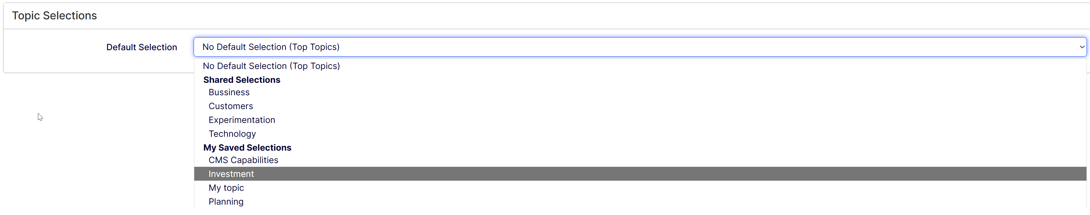 Click Save to save your changes. You can view your saved topic selection in the topic selection list.