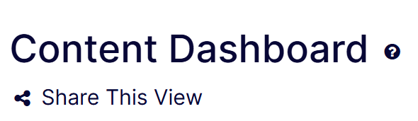 You can view and edit the details of your shared filter views on the Shared Views page. Each dashboard in Content Recommendations includes a Share This View link (located beside the title) that you can use to share the dashboard with other members of your organization.