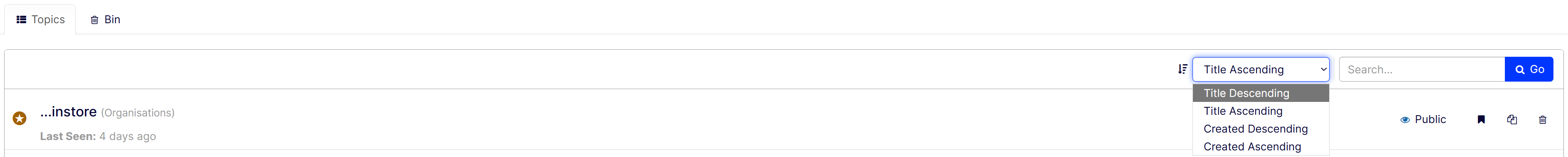 Sort, search, and view topic