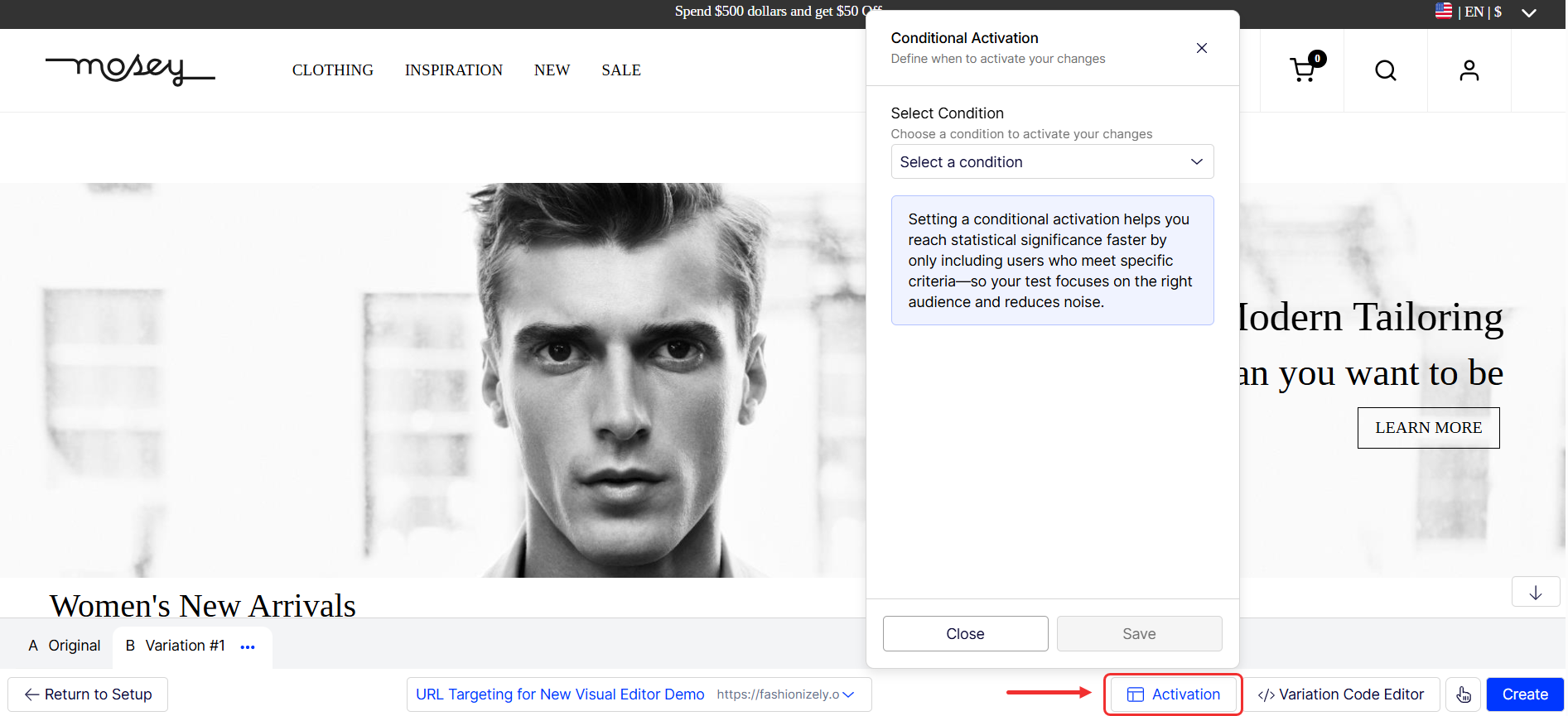 The New Visual Editor offers advanced features for your experiments and campaigns, including the ability to use conditional activations.