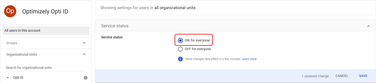 Opti ID lets you configure Security Assertion Markup Language (SAML) SSO with Google as the identity provider (IdP). Google can then authenticate and authorize your users.