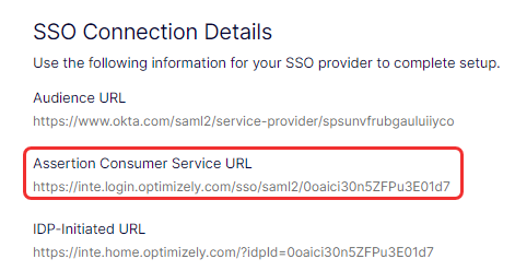 • ACS URL – The Assertion Consumer Service (ACS) URL, which is the endpoint where the identity provider sends the authentication response (SAML assertion) to the service provider. You can copy it from the Opti ID Settings SSO page in the other browser tab.