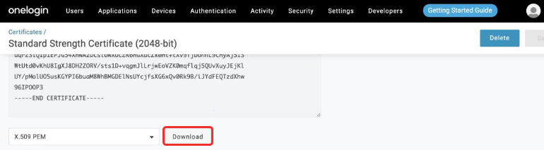 Click Download and save the PEM file.