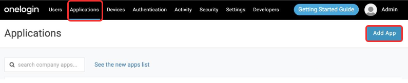In your OneLogin admin dashboard, go to Applications and click Add App.