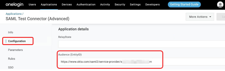- Go to the Configuration tab and paste the Audience URL into the field Audience (Entity ID).
