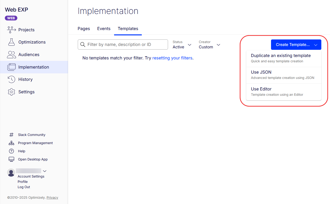 You can add a template (a reusable element your team can build once and reuse across multiple campaigns) from Implementation > Templates > Create Template.