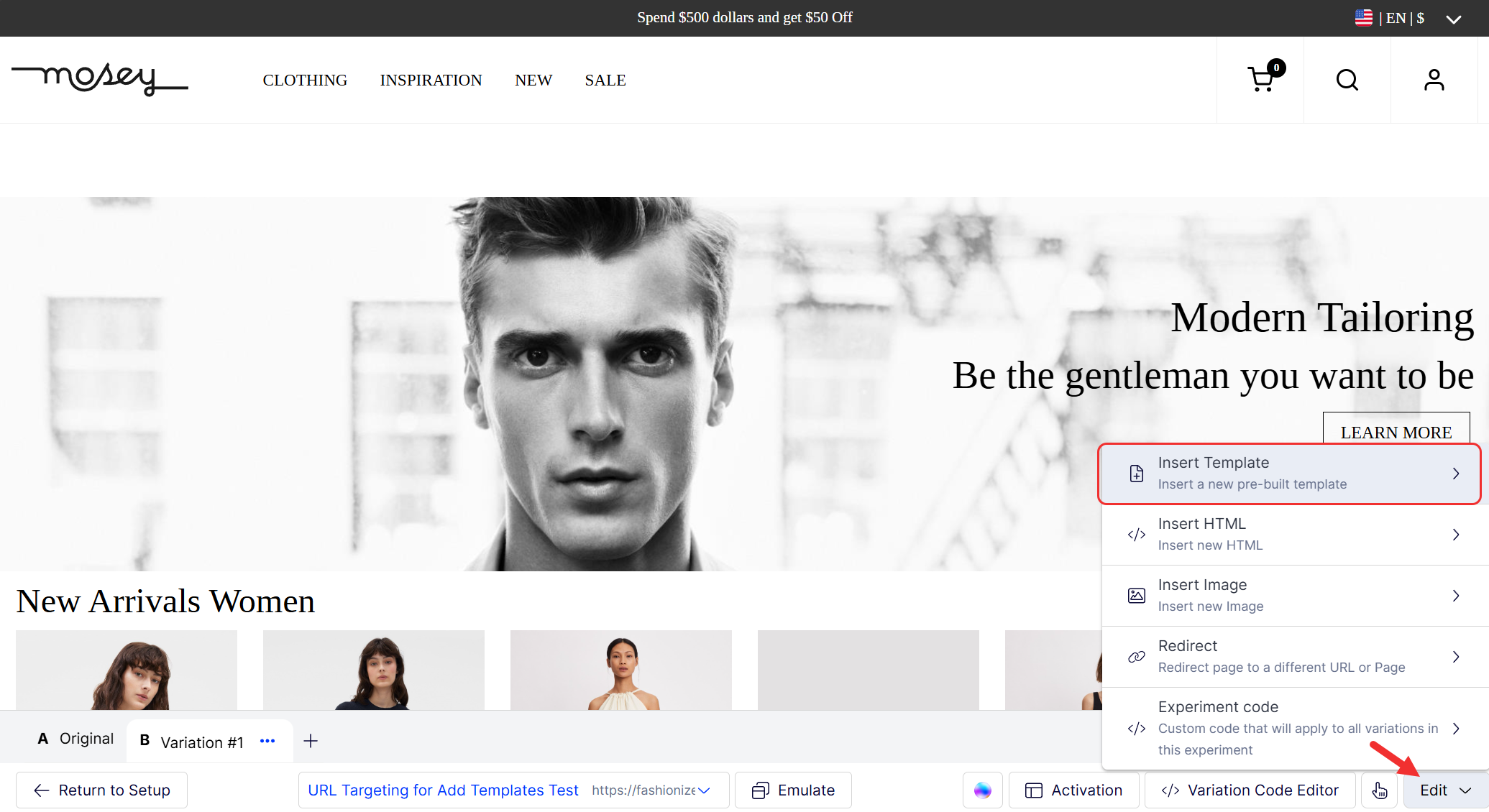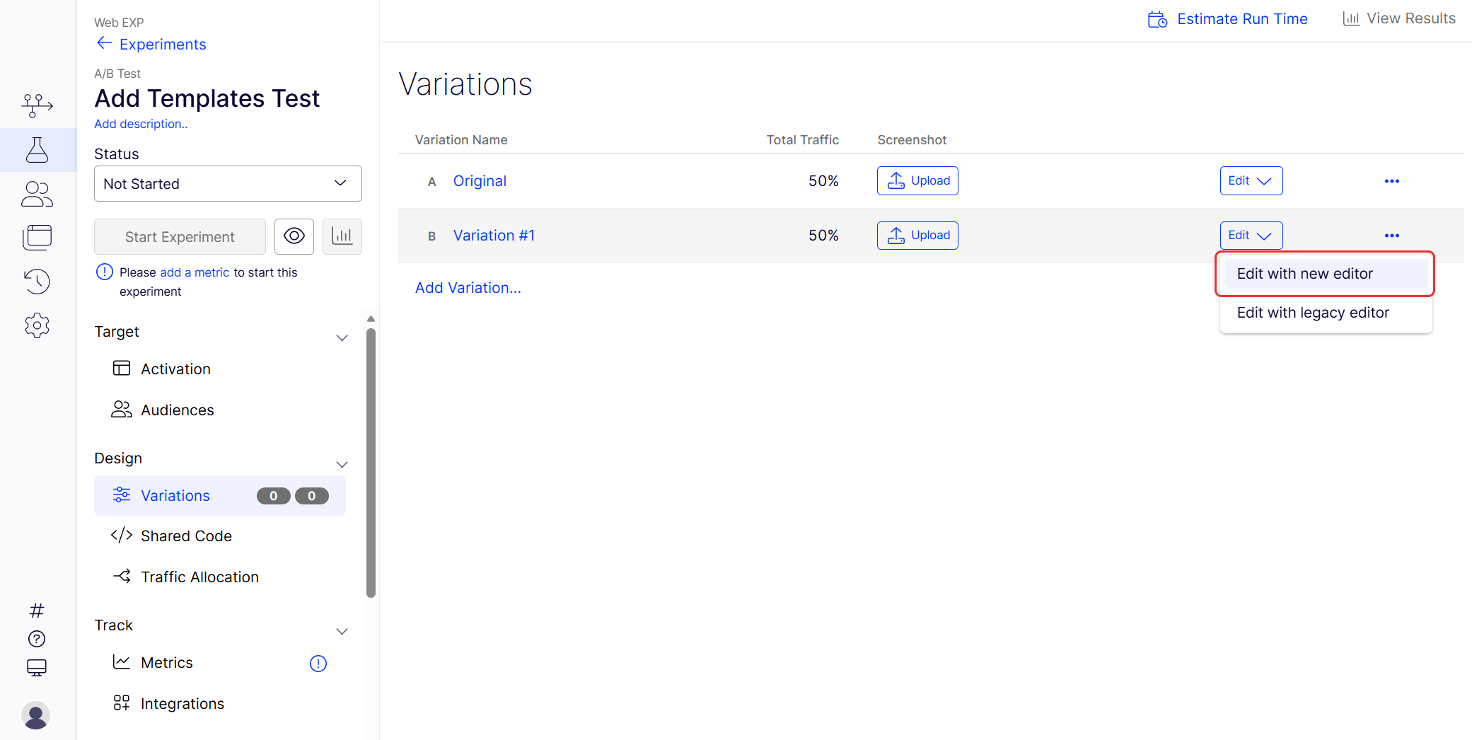 The new Visual Editor offers advanced features for your experiments and campaigns, including the ability to add templates.