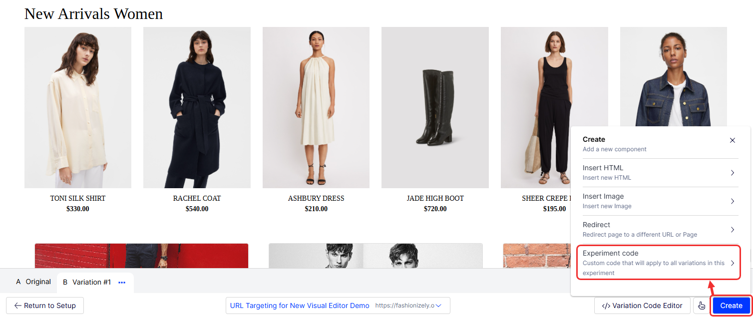 To use custom code, click Variation Code Editor.