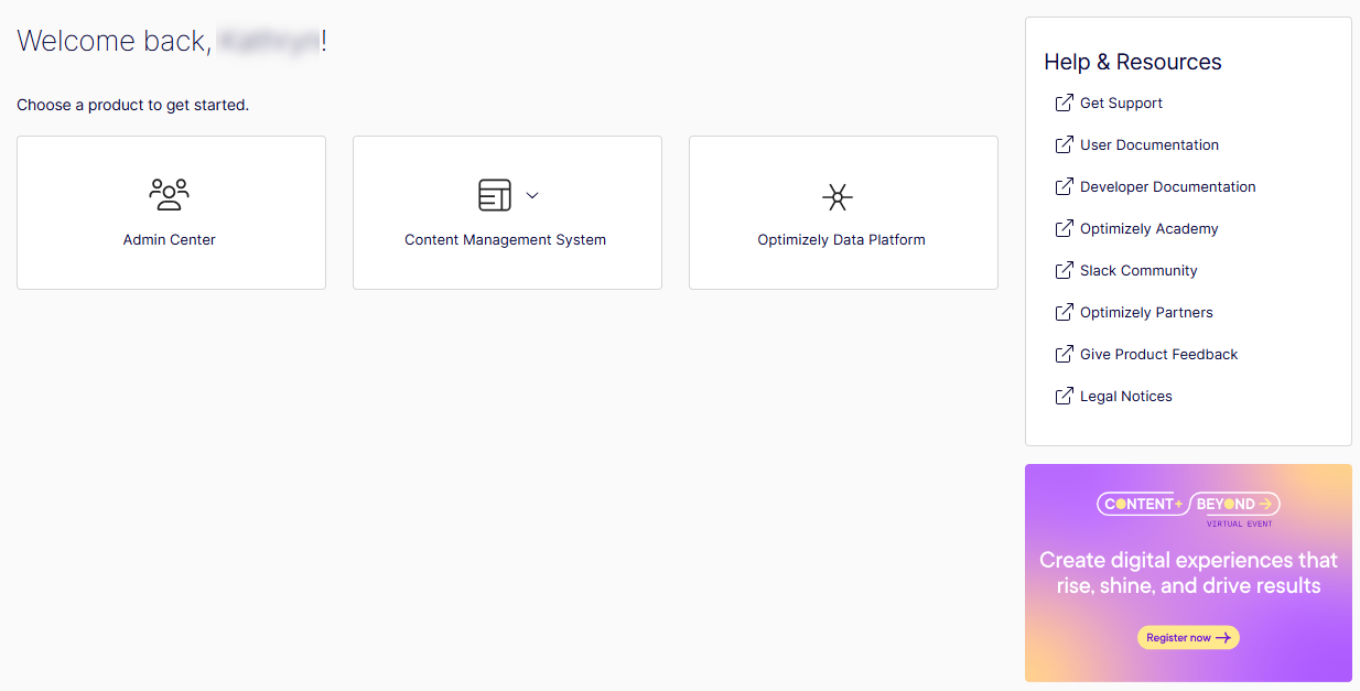 Updated the user interface (UI) of the Opti ID home dashboard (home.optimizely.com), providing a streamlined and intuitive way to access your Optimizely application instances.