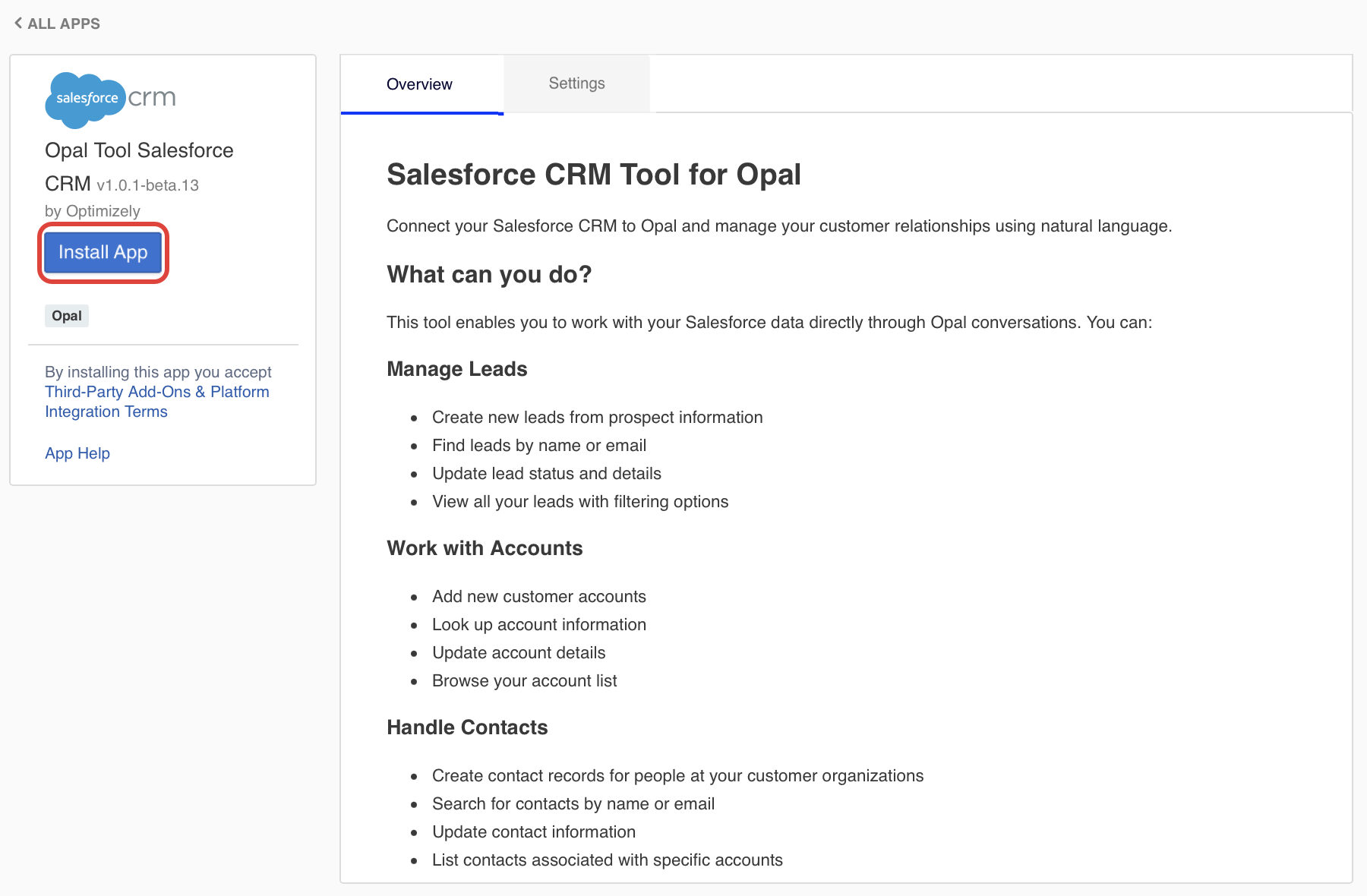 This makes the Opal app available in Salesforce.