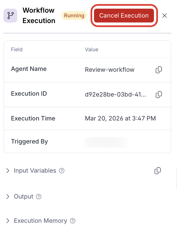 Click Cancel Execution to stop Opal's current run of the workflow agent.