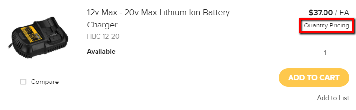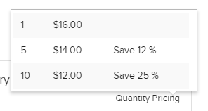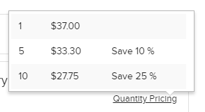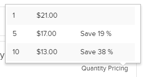 - Click Quantity Pricing to view the Price Matrix pricing.