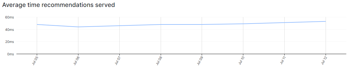 Average time it takes to generate product recommendations and return them to a site (after a tracking request is sent)