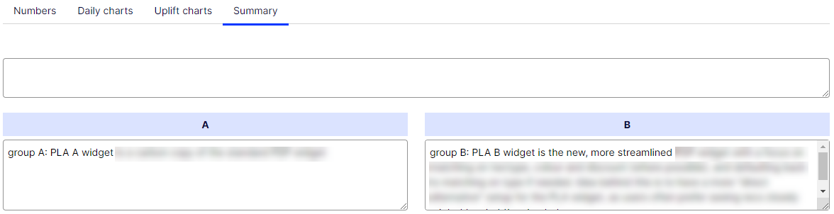 - In the table, you can view and compare key metrics on the site between test groups, such as: