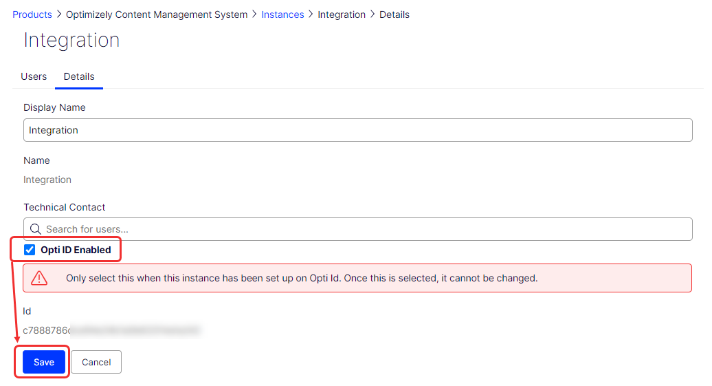 - Select the CMS instance for which you want to enable Opti ID.