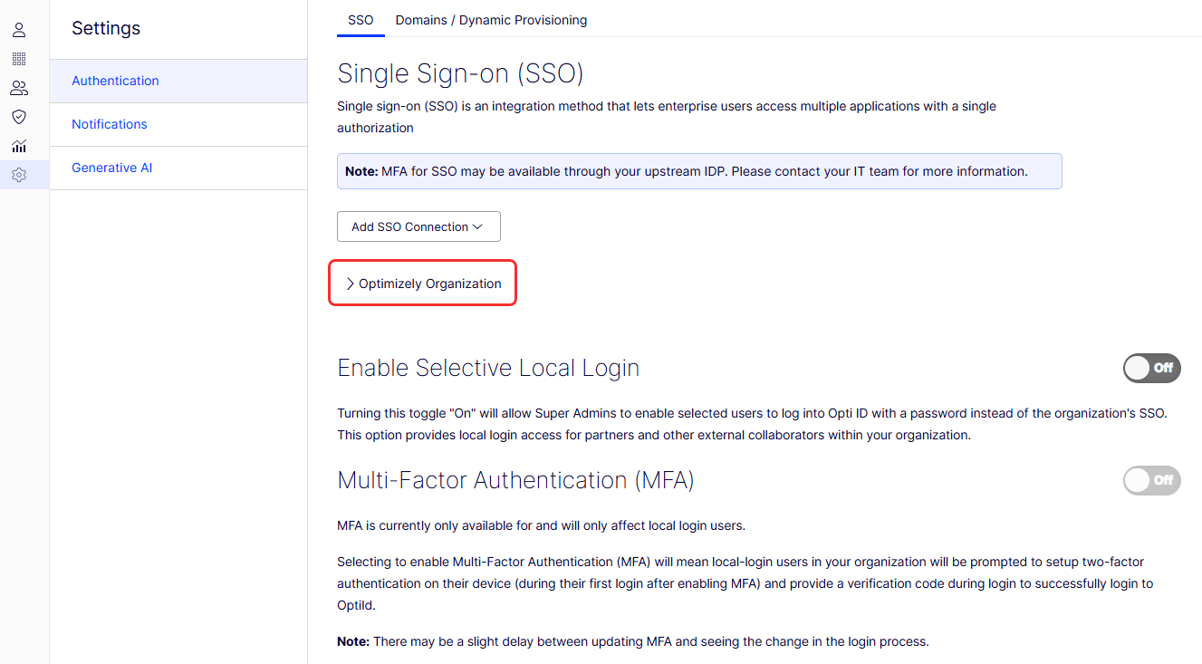 - Go to Settings > Authentication > SSO.