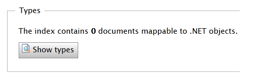 If you go to Find –> Index you’ll see a summary of the index. You’re also able to explore the index to browse its contents. You’ll notice that the search index is empty at this point: